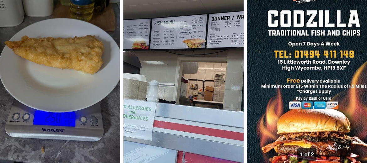 Codzillaz Traditional Fish & Chips is a must-visit takeout spot nestled in High Wycombe. This cozy restaurant specializes in classic fish and chips, offering fresh cod that delights every palate. The sprawling menu also boasts grilled burgers, tantalizing kebabs, and eclectic munch boxes that serve you a hearty meal in one delightful package. Located conveniently on Littleworth Road, Codzillaz promises a casual atmosphere where families can dine comfortably. With a commitment to quick service and a range of payment options, this establishment caters to your every need from a satisfying takeaway to a laid-back dine-in experience. Don't miss out on this local favorite that represents the heart of down-home cooking.