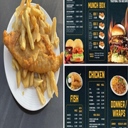 Munch box for 3 people 3 Burger of your choice from, Grilled Burger, Fillet Burger, Zinger Burger, 1/4 Pounder or Vegi Burger and onion rings, fried wings and loded with lamb donner and chips